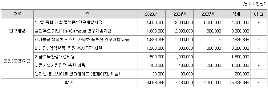 [공모금액 사용계획]