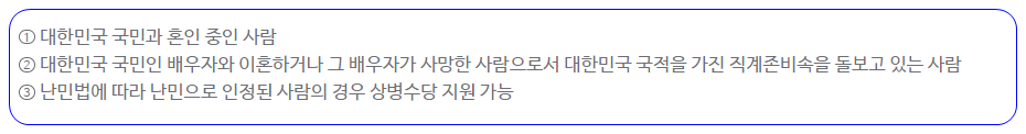 - 취업자 : 건강보험가입자 또는 고용보험가입자 (입원 초일 포함 직전 1개월간 자격 유지 시 인정)