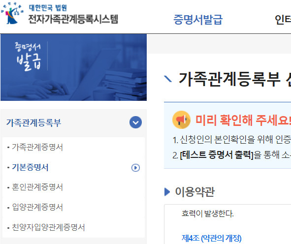 한편, 미성년자 자녀 명의 기본증명서와 가족 관계 증명서를 발급받기 위해서는 법원 전자가족관계등록시스템 (https://efamily.scourt.go.kr/)에 접속하여, 화면 안내에 따라 진행하면 되겠습니다.