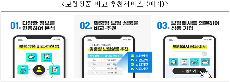 소비자가 플랫폼을 통해 여러 보험사의 온라인 보험 상품을 한눈에 비교하고, 본인에게 가장 적합한 상품을 추천받아 보험사의 홈페이지를 통해 간편하게 가입할 수 있도록 하는 제도입니다.
