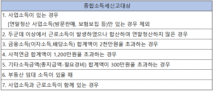 [근로자나 은퇴자의 경우 종합소득세 신고 대상]
