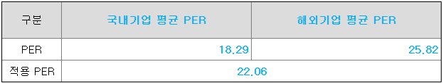 <유사회사의 평균 PER 산정>
