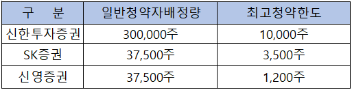 - 청약 가능 증권사 : 신한투자증권, SK증권, 신영증권