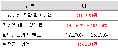 당초 공모 희망 가격 하단보다도 2,200원 하향 조정하여 결정된 것입니다.