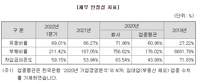 회사의 재무안정성 비율은 업종 평균과 유사한 수준을 나타내고 있습니다.