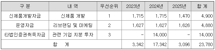 [공모자금 사용계획]