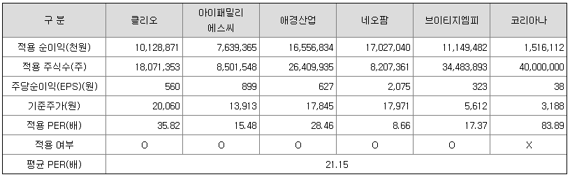 <유사회사의 평균 PER 산정>