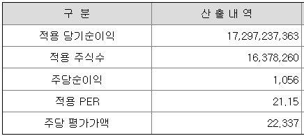 <유사회사의 평균 PER 산정>