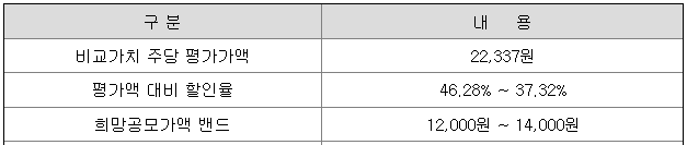 희망 공모가격은 12,000원 ~ 14,000원이고, 한국투자증권과 유진투자증권에서 청약 가능합니다.