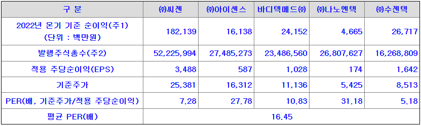 <유사회사의 평균PER 산정>