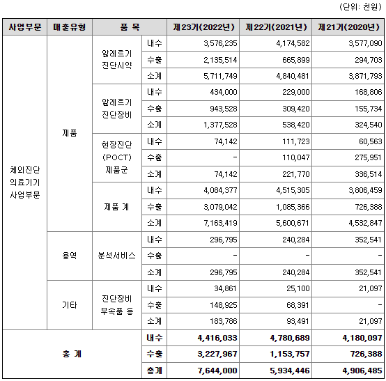 동사는 이상과 같이 주력 제품을 고집적화하는 한편, 신제품 개발을 통해 체외 진단 분야에서 다양한 제품 라인업을 갖춤으로써 사업 확장을 추진하고 있습니다.