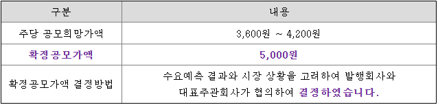 당초 희망 공모가격 상단 4,200원 대비 19% 상향 조정된 가격으로 결정된 것입니다.