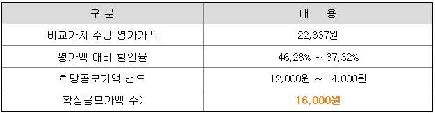 확정 공모가를 16,000원으로 결정된 것을 설명하기 위해서인지 신청 가격을 자세하게 나누어 공시한 것이 눈에 뜨입니다.