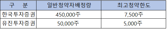- 청약 가능 증권사 : 한국투자증권, 유진투자증권