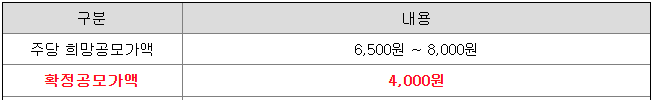 당초 희망 공모가격 하단 6,500원보다 2,500원 하향 조정하여 확정된 것입니다.