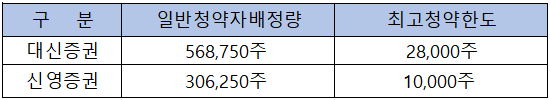 - 청약 가능 증권사 : 대신증권, 신영증권