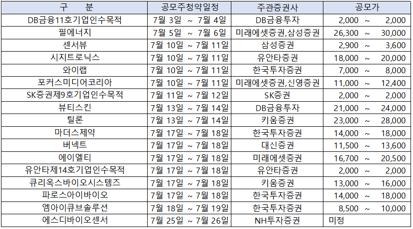 [ 2023년 7월 공모주 청약 중복 일정 - 3 ]
