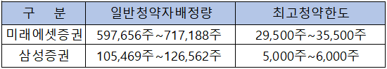 - 청약 가능 증권사 : 미래에셋증권, 삼성증권