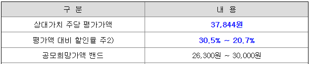 희망 공모가격은 26,300원 ~ 30,000원이고, 미래에셋증권과 삼성증권에서 청약 가능합니다.