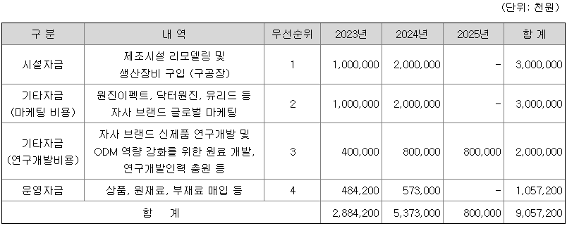 뷰티스킨은 금번 공모를 통해 조달된 자금으로 제조 시설 리모델링 등 시설자금에 30억을 사용하고, 마케팅 비용으로 30억, 연구개발비로 20억을 사용한 후 나머지 11억을 운영자금으로 사용할 계획입니다.