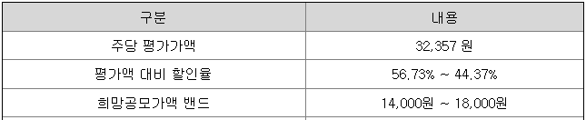 희망 공모가격은 14,000원 ~ 18,000원이고, 한국투자증권에서 청약 가능합니다.