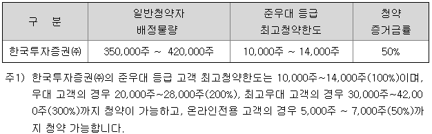 - 청약 가능 증권사 : 한국투자증권