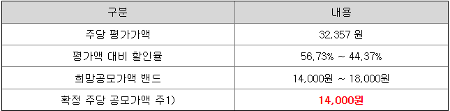 당초 희망 공모가격 하단으로 결정된 것입니다.