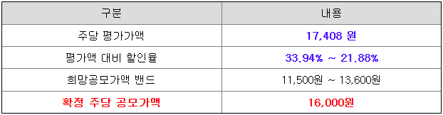 당초 희망 공모가격 상단 13,600원 대비 2,400원 상향 조정되어 결정된 것입니다.