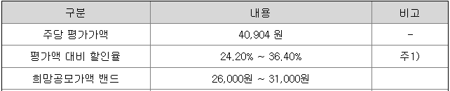희망 공모가격은 26,000원 ~ 31,000원이고, NH투자증권과 한국투자증권 등 6개 증권사에서 청약 가능합니다.