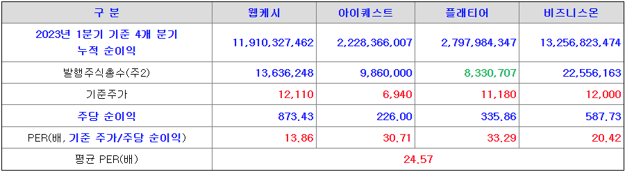 <유사회사의 평균 PER배수 산정>