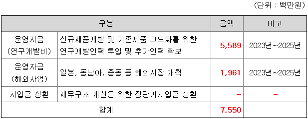[공모자금 사용계획]