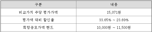 희망 공모가격은 10,000원 ~ 11,500원이고, 한국투자증권과 하이투자증권에서 청약 가능합니다.