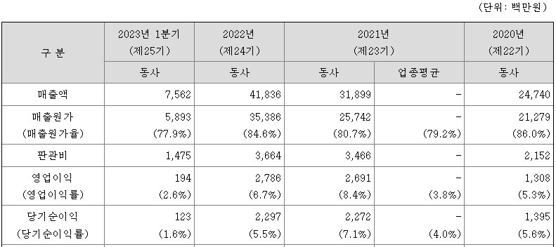 코츠테크놀로지의 매출액은 2020년 247억에서 2022년 418억으로 급 신장하고 있습니다.