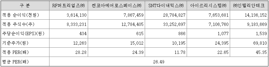 < 유사회사의 평균 PER배수 산정>