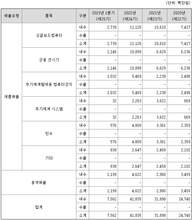 싱글보드컴퓨터와 군용 전시기의 비중이 높은 편입니다.