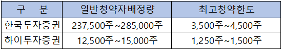 - 청약 가능 증권사 : 한국투자증권, 하이투자증권