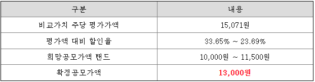 당초 희망 공모가격 상단 11,500원 대비 1,500원 상향 결정된 것입니다.
