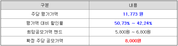 당초 희망 공모가격 상단 6,800원 대비 1,200원 상향 결정된 것입니다.