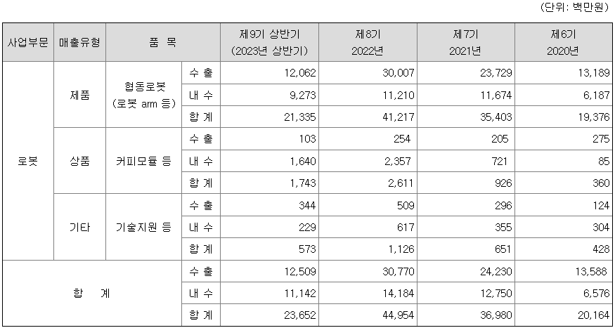 두산로보틱스의 매출액은 2020년 202억에서 2021년 379억 2022년 450억으로 급속한 성장세를 보이고 있습니다.