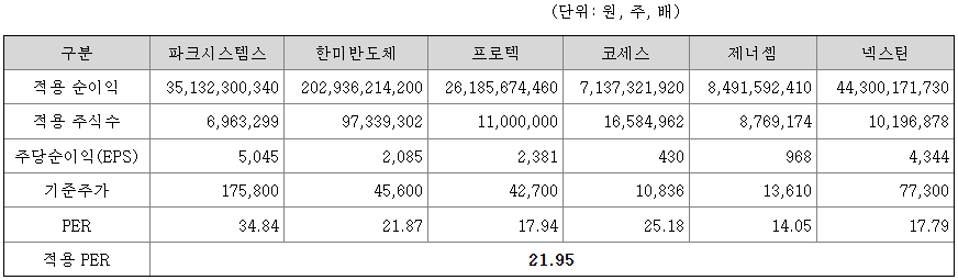 <유사회사의 평균 PER배수 산정>