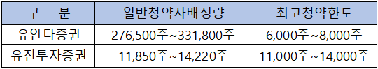 - 청약 가능 증권사 : 유안타증권, 유진투자증권