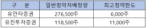 - 청약 가능 증권사 : 유안타증권, 유진투자증권
