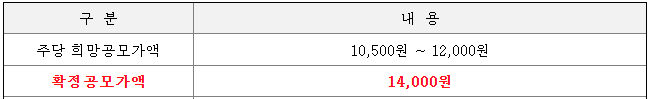 당초 희망 공모가격 상단 12,000원 대비 2,000원 상향 조정된 가격으로 결정된 것입니다.