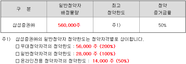 - 청약 가능 증권사 : 삼성증권