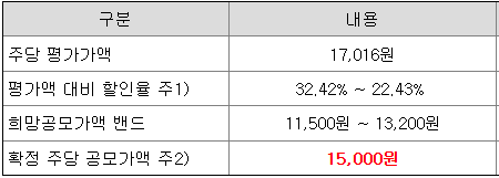 다만, 확정 공모가 15,000원 이상 신청 비율이 공시되지 않아 다소 아쉽다고 생각됩니다.