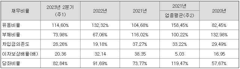 퓨릿의 부채비율과 차입금 의존도는 2020년 이후 꾸준히 개선되어 왔으며, 업종 평균 대비 양호한 실적을 기록하고 있습니다.