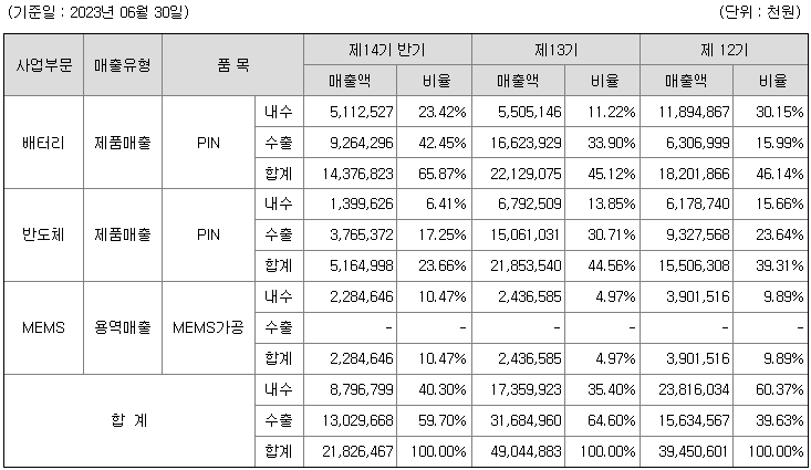 동사는 반도체 검사 장비에서 출발하여 2차 전지용 제품까지 사업 영역을 확장하면서, 반도체의 경우 CPU / GPU등 고난도 비메모리 반도체까지 검사가 가능한 제품을 생산하고 있으며, 2차 전지용 제품의 경우 원형 및 각형 배터리 Pin 제품 설계 기술과 그리퍼 설계 기술까지 확보하고 영업 활동을 펼치고 있습니다.