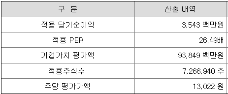 <유사회사의 평균 PER배수 산정>