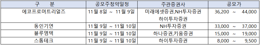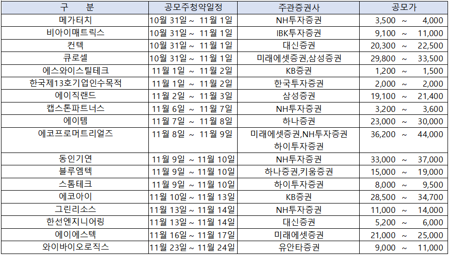 [ 2023년 11월 공모주 청약 일정 종합 ]