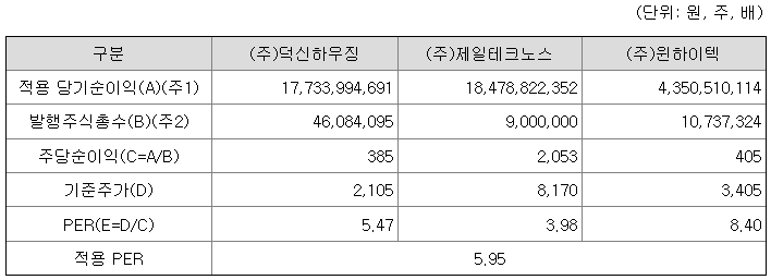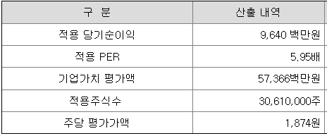 회사의 주당 평가가액은 2023년 반기말 기준 최근 4개 분기 순이익에 유사회사의 평균 PER배수를 곱하여 회사 가치를 정하고, 이를 주식수로 나누어 산출한 것입니다.